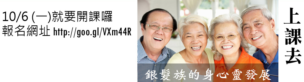 2014年10月6日即將首次開課的「銀髮族的身心靈發展」,歡迎大家來上課。