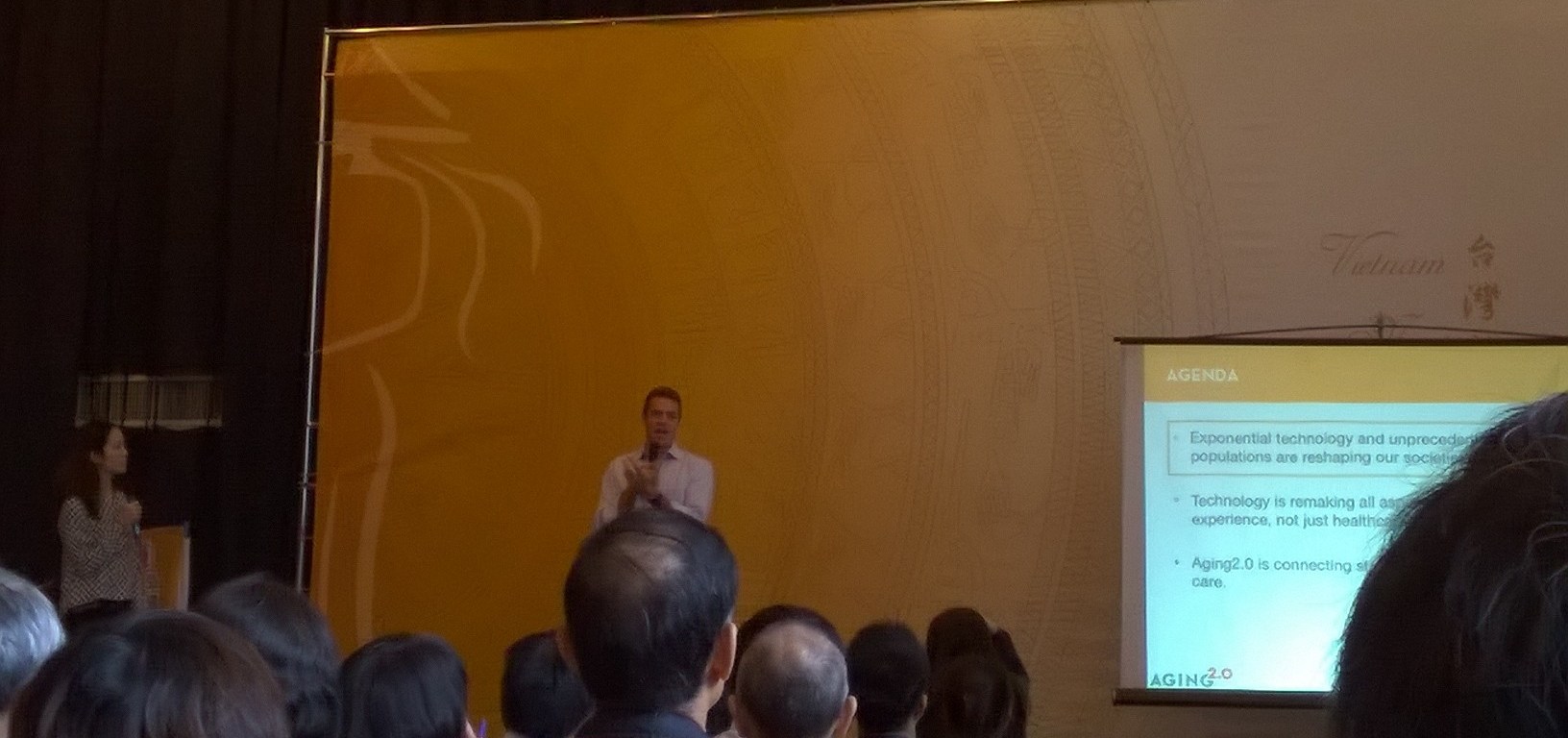 銀浪新創力行動提案是由銀享全球所舉辦的活動,第一個專題演講是由美國Aging 2.0創辦人Stephen Johnston來主講,Stephen從人口結構開始講起,然後探討到底科技如何影響老化的經驗,最後介紹Aging 2.0平台的運作模式。