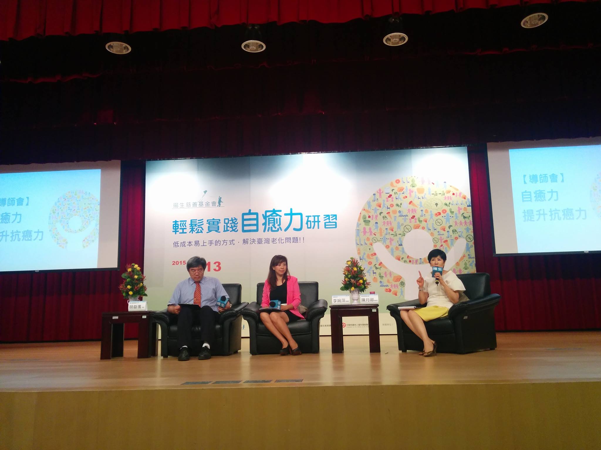 專家與談的部分,早上由癌症關懷基金會董事長陳月卿女士主持,討論如何透過自癒力的提升來對抗癌症。月卿姐生動的主持,讓現場就像健康2.0的錄影現場一樣,三位專家從營養、口腔保健、生活習慣改變的角度切入,提供了不少寶貴的建議。