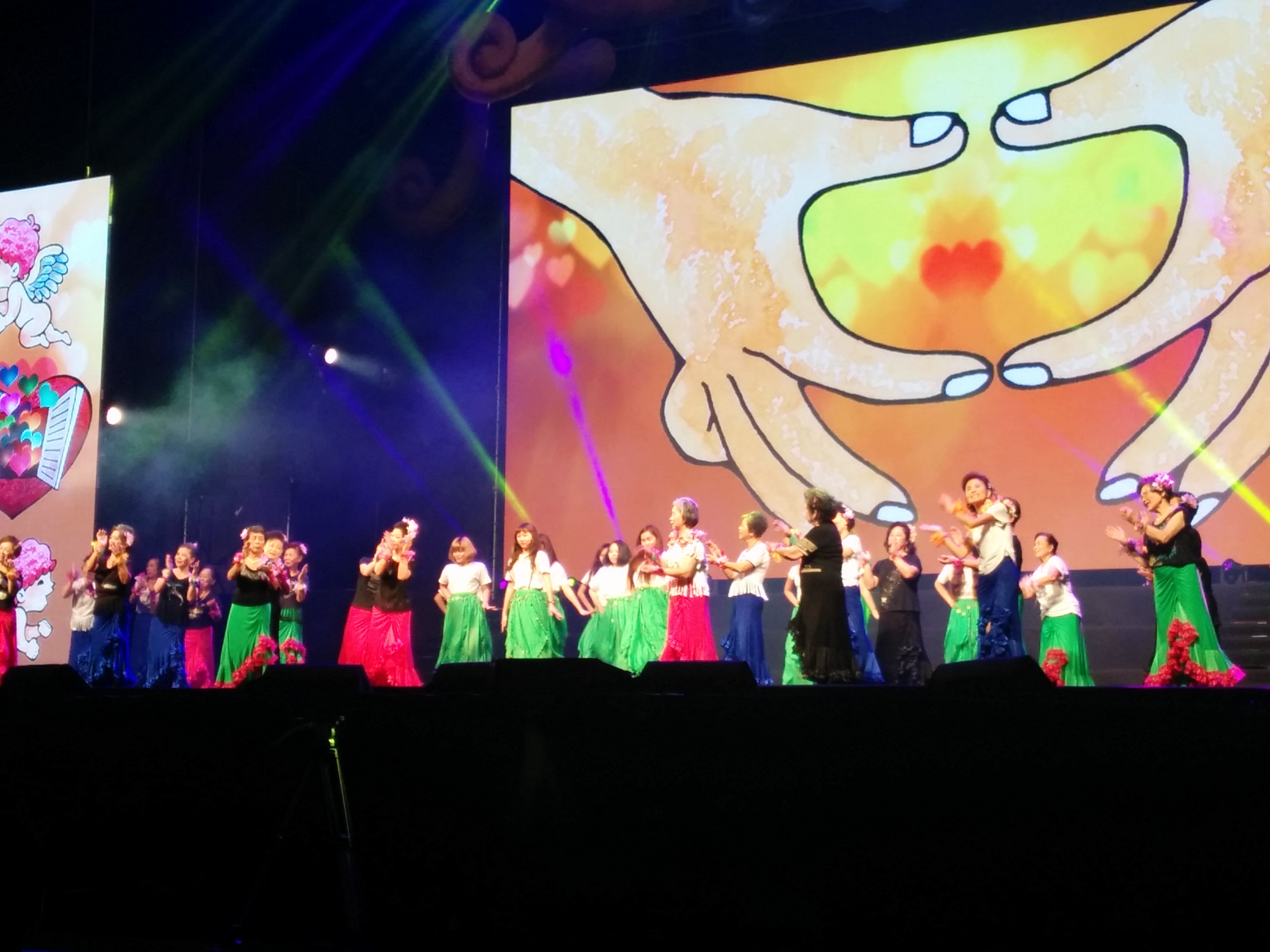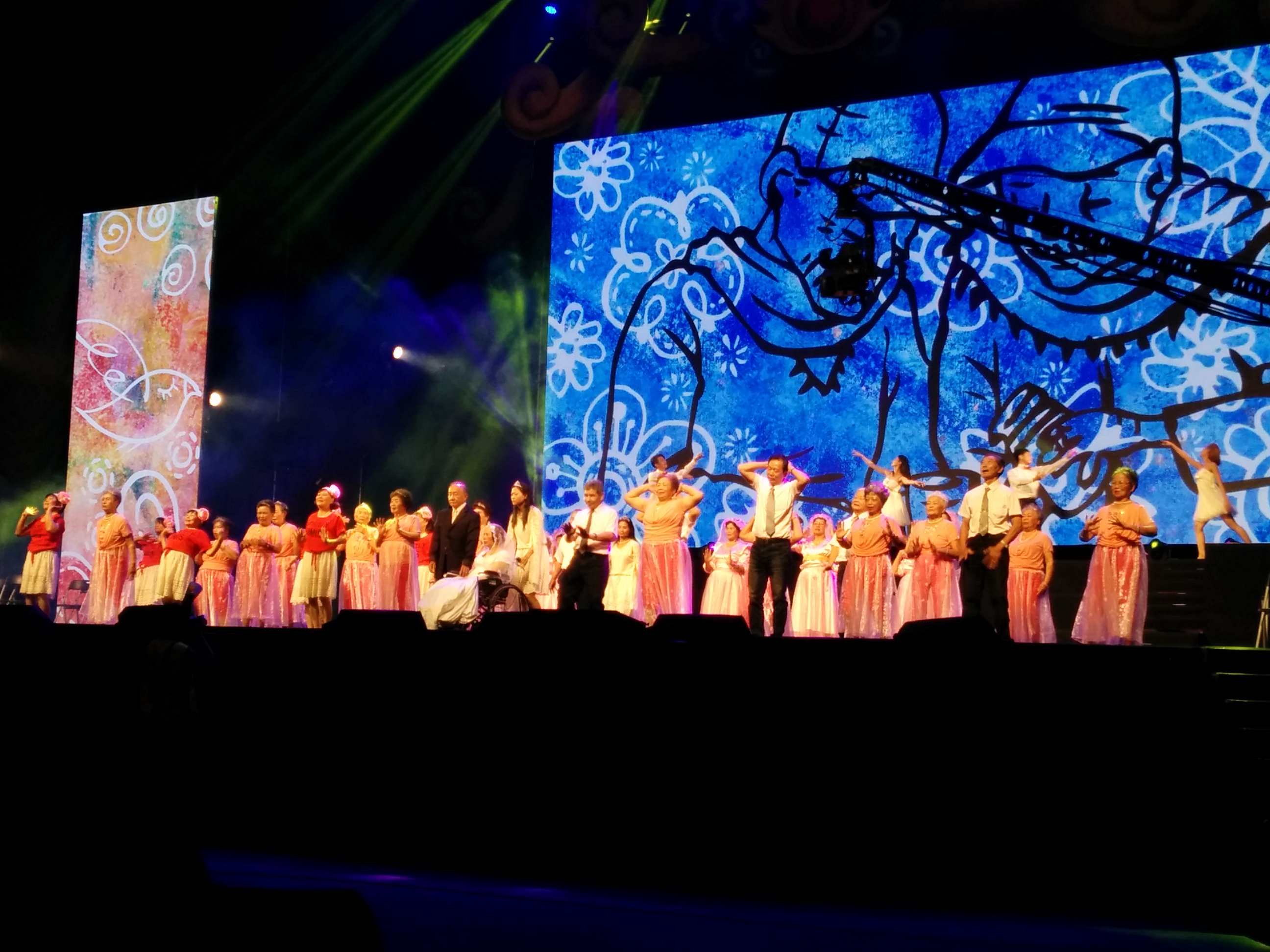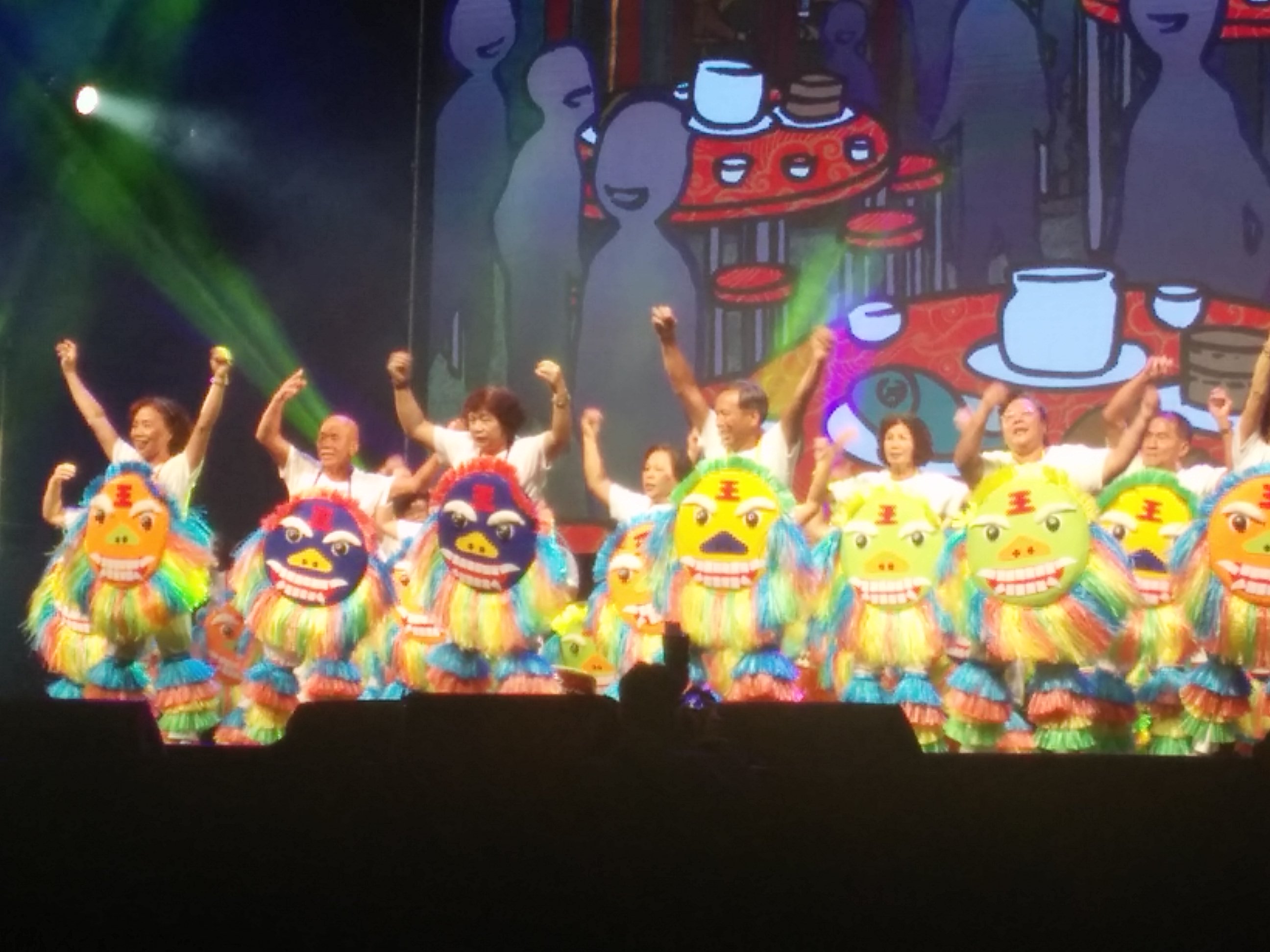 這次的表演中,總共有十一個團隊,從台灣各個地方而來,再加上日本神戶銀髪大學(KSC)合唱團,真的是非常精彩。台南鹽水區農會長輩們把在生活中息息相關的廟街變成一支舞,把「峰城傳奇」帶到小巨蛋。