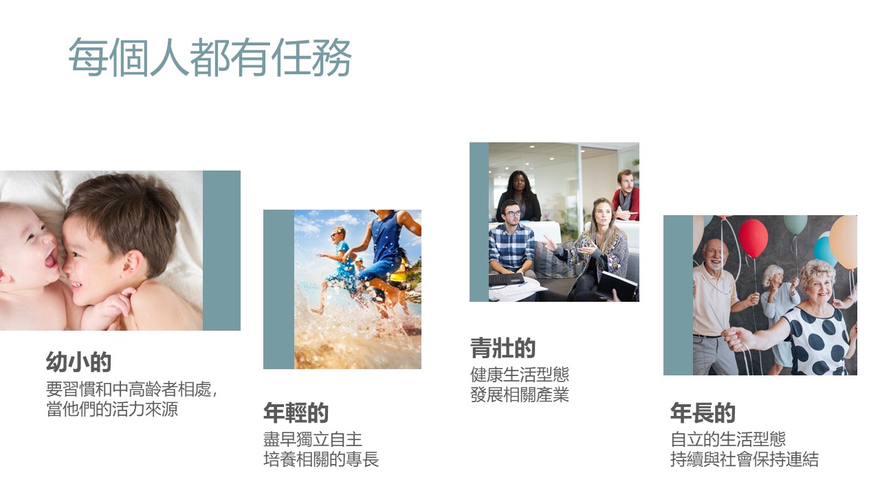 他特別提醒大家,千萬不要只看現在的狀況,而是要拉長時間軸去思考。他也直言,現在很多資源是放在長照領域這一塊,他認為這固然是必要的,可是如果我們沒有鼓勵大家健康到老的概念,大家都等著被照護,那是一件非常恐怖的事情。
