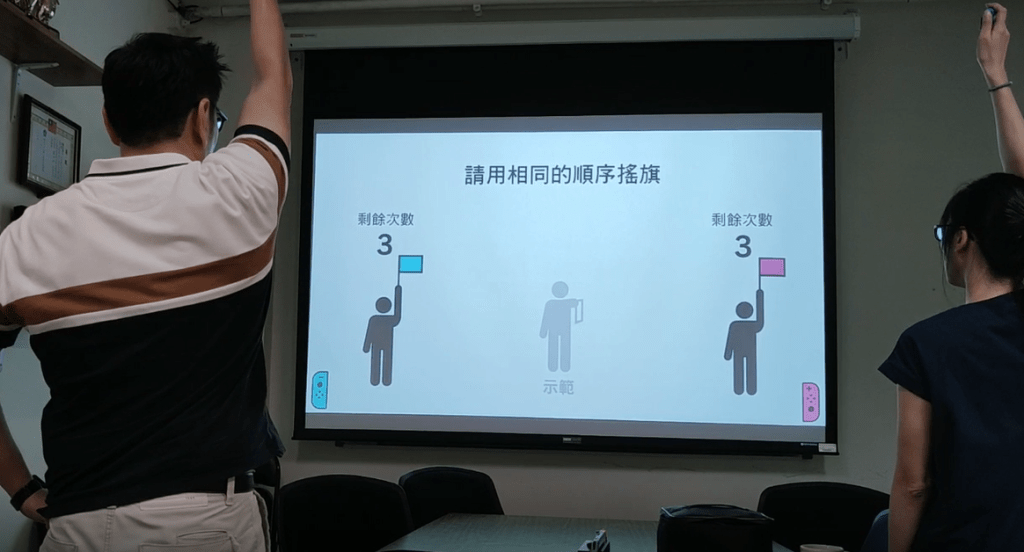 這個遊戲是剪刀、石頭、布的進階版,除了訓練反應速度之外,也因為規則每次會有所轉換,所以可以訓練執行功能。其實,過去我們去老人社區關懷據點帶活動,會用紙牌玩同樣的遊戲。